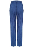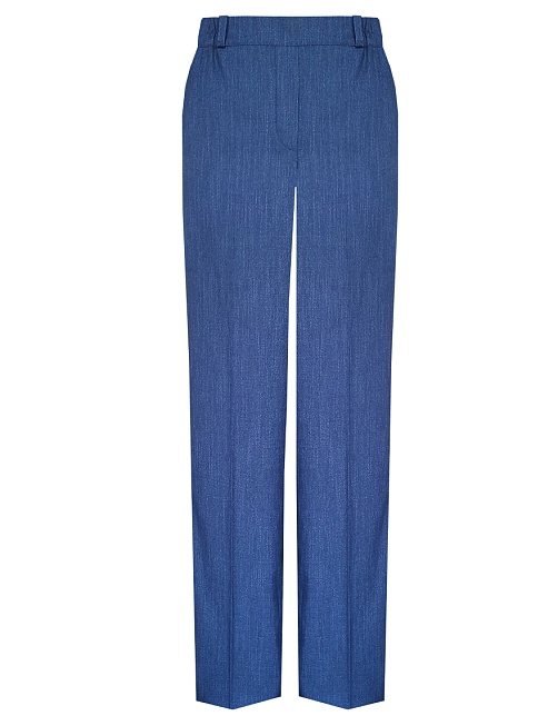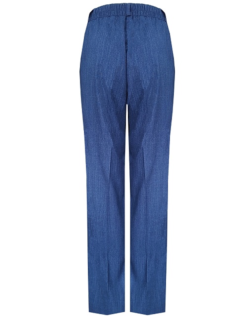Легкие брюки свободного кроя цвета темно-синего денима из смесовой ткани льняной структуры, удобная резинка по талии обеспечивает удобство и комфорт, не стесняя и не вызывая дискомфорта, шлевки под ремень, посадка средняя, имитация гульфика заменяет застежку на молнию и пуговицу, боковые карманы с отрезным бочком, заутюженные стрелки, низ обработан от осыпания ткани, но не подогнут - это позволяет скорректировать длину брюк под свой рост, без подкладки.