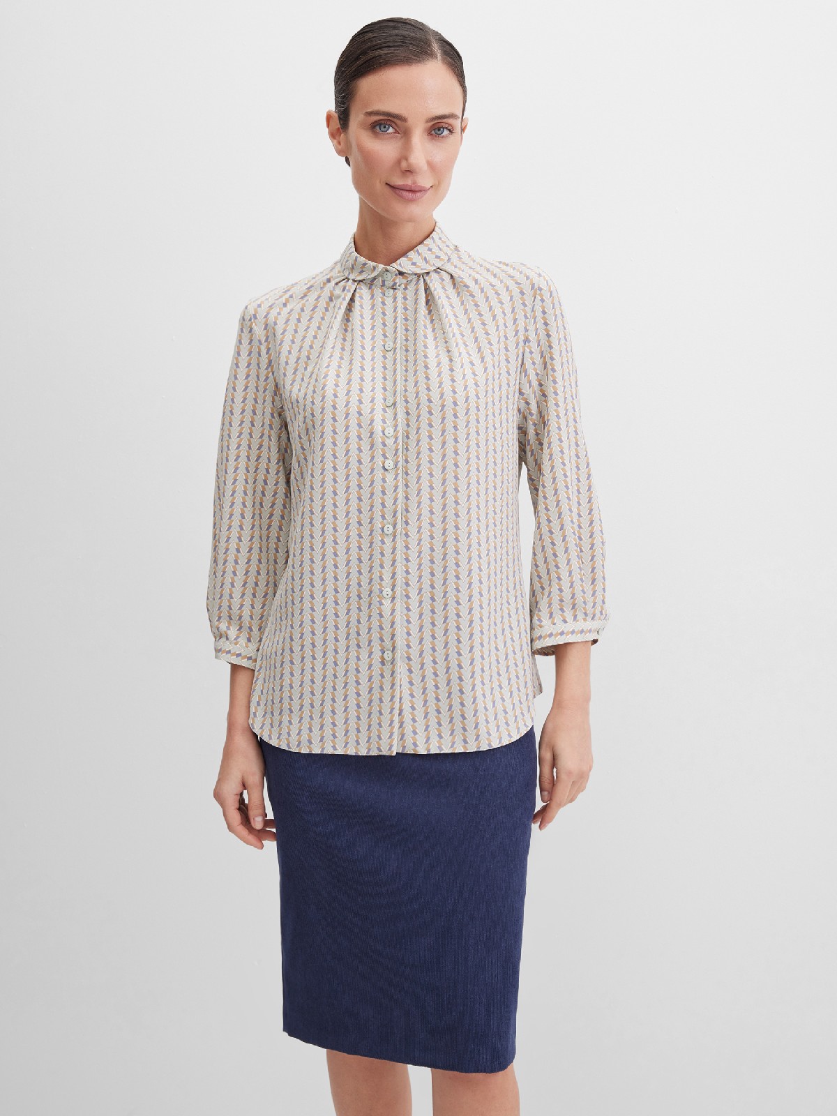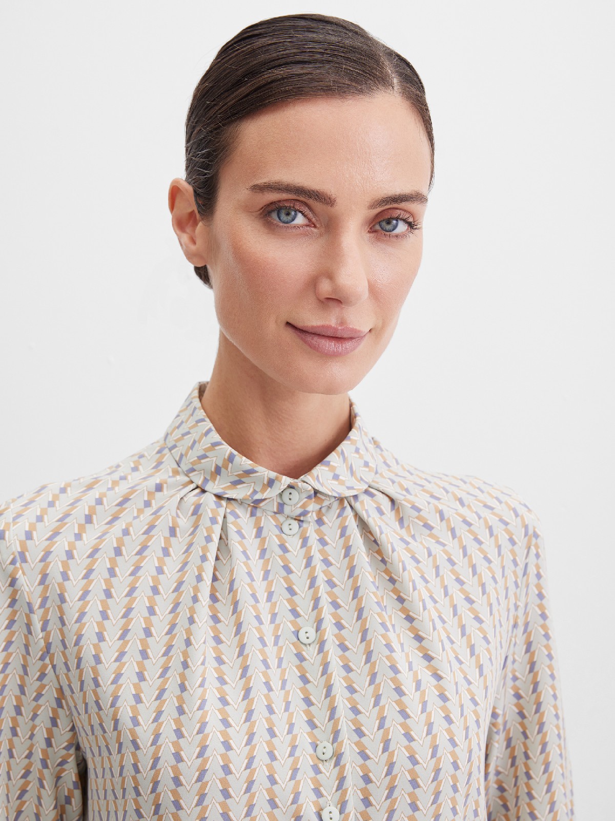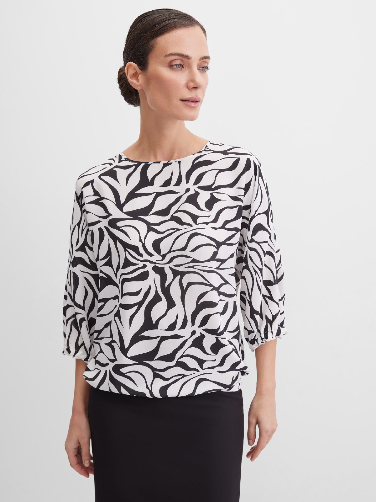 Блузка свободная на резинке с оригинальным вырезом и принтом