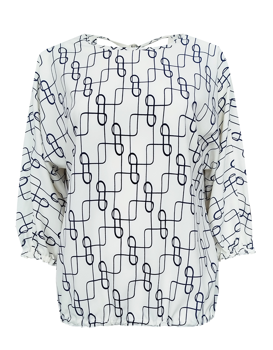 Блузка свободная на резинке с оригинальным вырезом и принтом