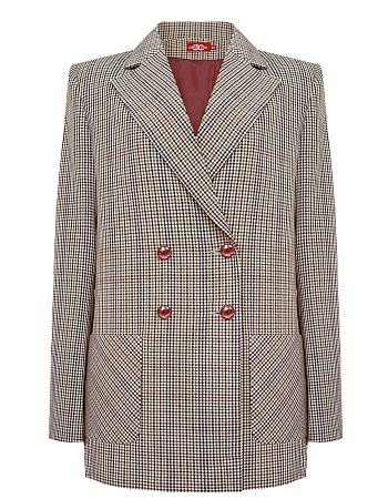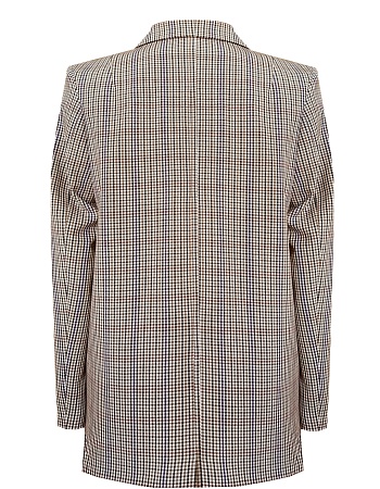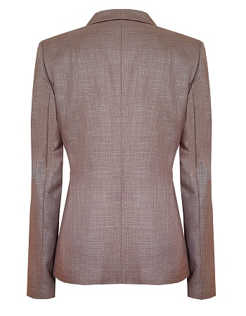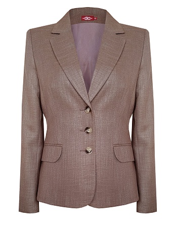 Меланжевый жакет в клетку из поливискозной ткани смешанной расцветки  особого переплетения с включением нитей разной толщины, такая текстура "в крапинку" создает оригинальный рельеф, из-за чего усиливается эффект перехода цветов, придающие изделию уникальный внешний вид. Жакет приталенный, однобортный, английский воротник, функциональные прорезные карманы с клапаном, прямой борт, застежка на пуговицы, длинный втачной рукав, тонкие подплечники, модель на подкладке.