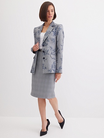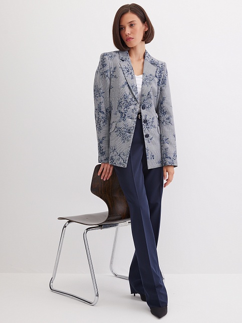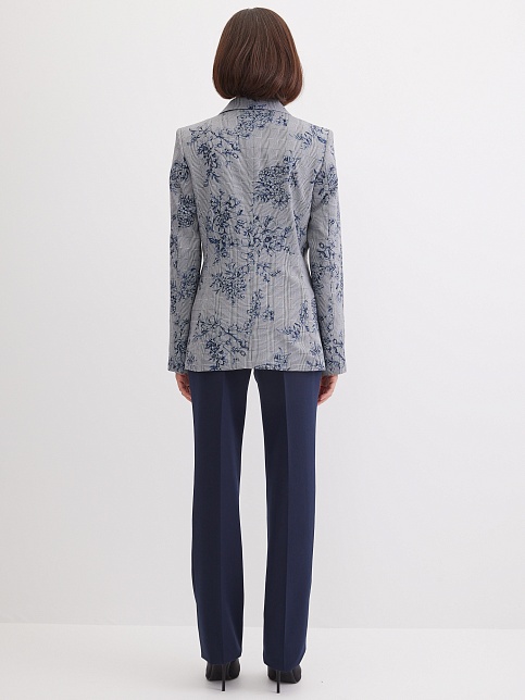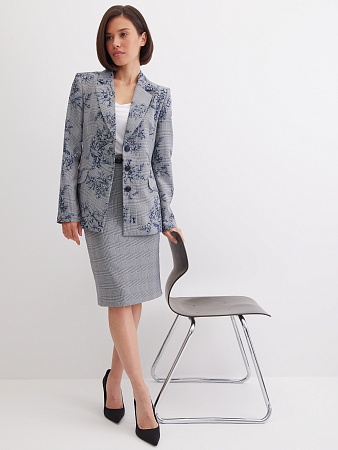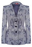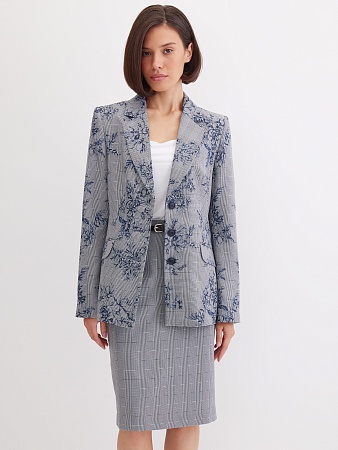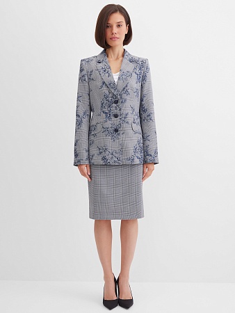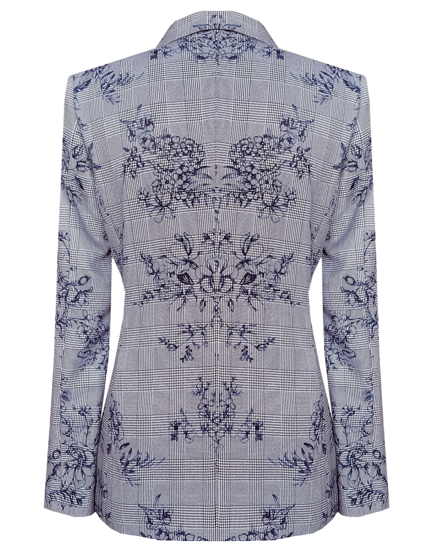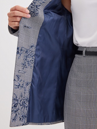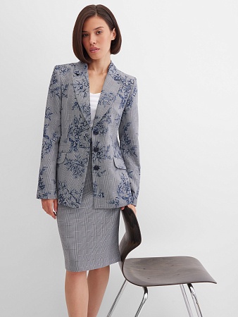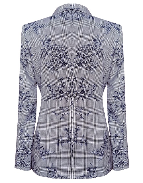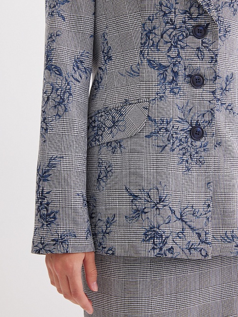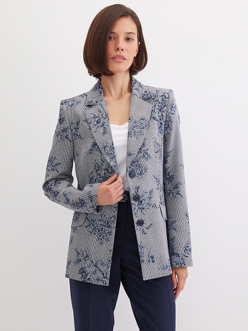 Классический жакет с гармоничным сочетанием крупного цветочного узора на традиционной клетке гленчек создает интересный и необычный визуальный эффект, выглядит более смело и экстравагантно. Средняя длина, приталенный, однобортный, английский воротник, прорезные карманы с клапаном, прямой борт, застежка на пуговицы, длинный втачной рукав, тонкие подплечники, модель на подкладке. Модель выполнена из премиальной костюмной ткани с эстетическим внешним видом и уникальными свойствами.