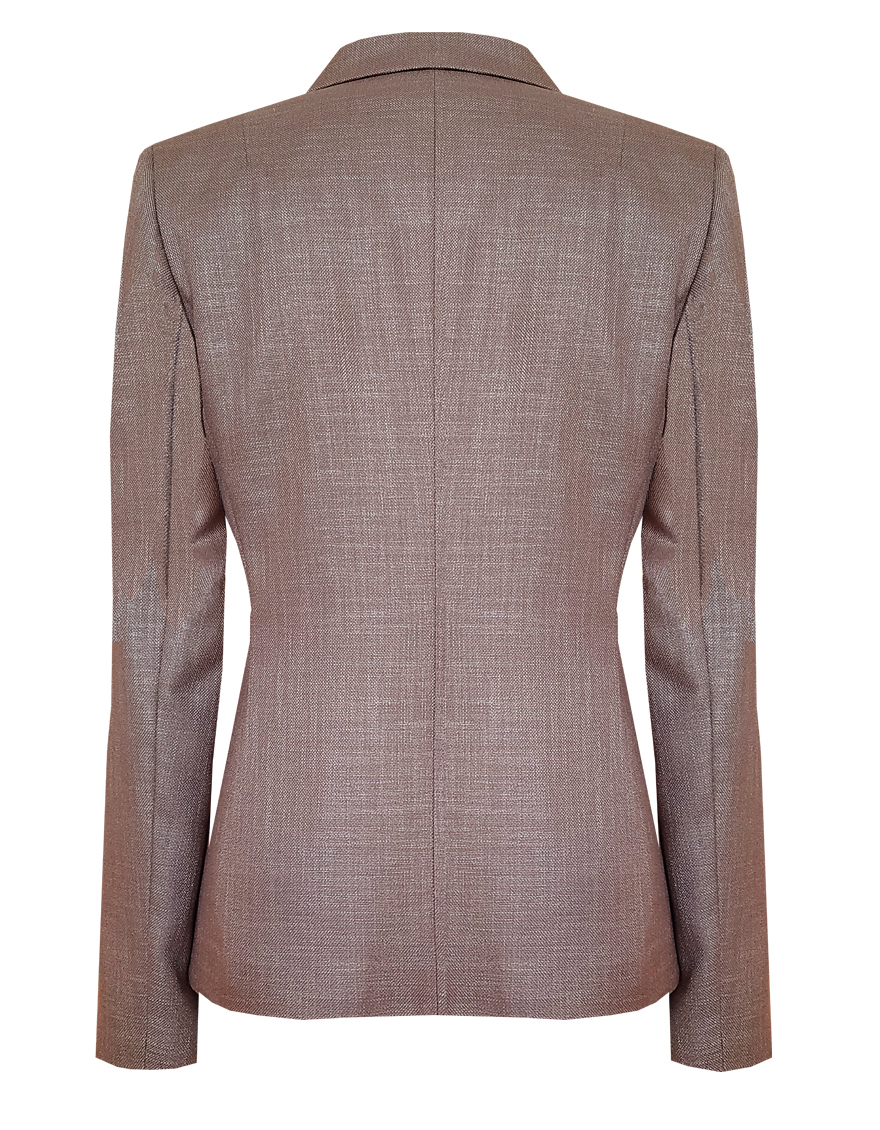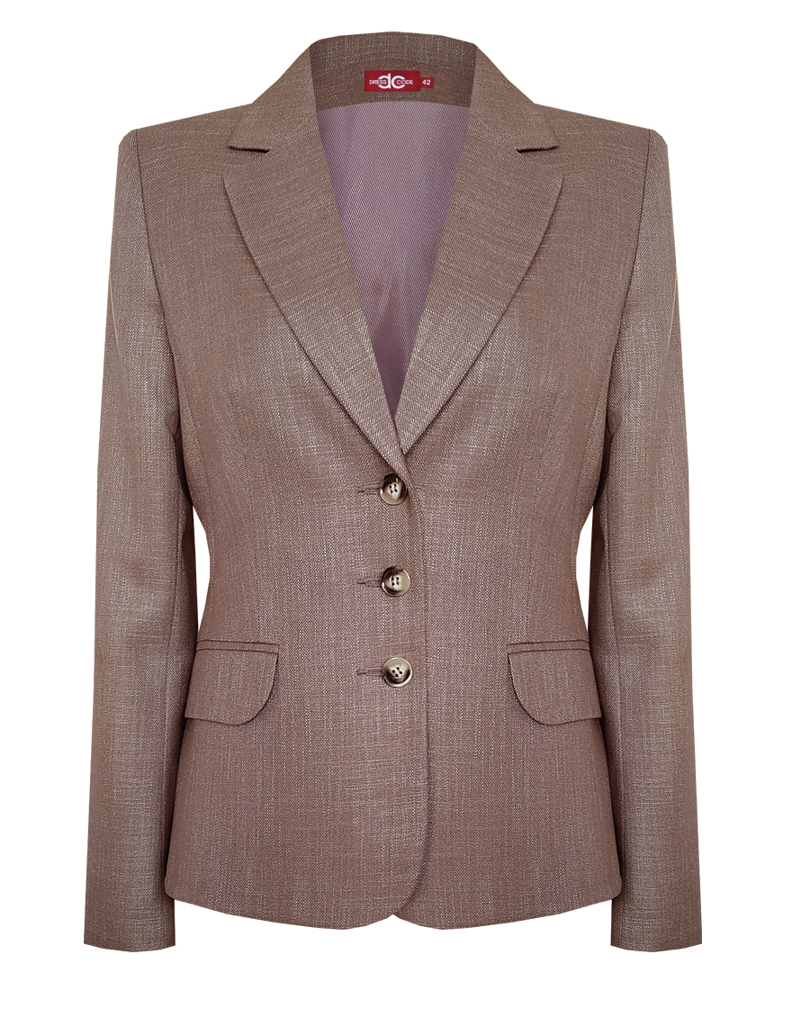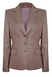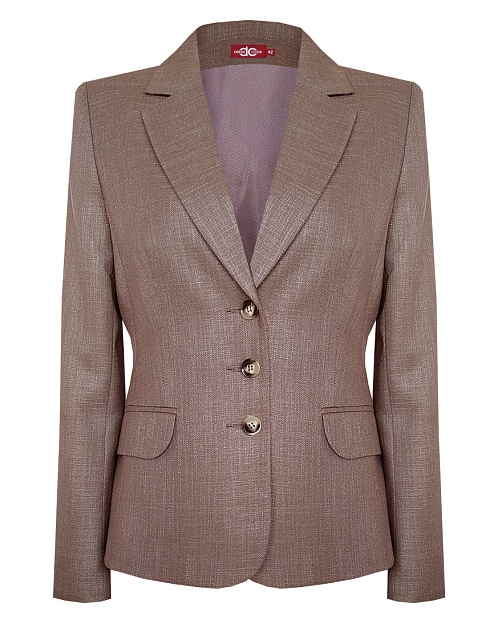 Классический жакет из меланжевой ткани с характерным пятнистым или "мраморным" эффектом придает изделию особую объемность, благородную фактуру и глубину, делая жакет более выразительным по сравнению с однотонными моделями, средняя длина, приталенный, однобортный, английский воротник, прорезные карманы с клапаном, круглый борт, застежка на пуговицы, без шлицы на спинке, длинный втачной рукав, тонкие подплечники, модель полностью на подкладке.