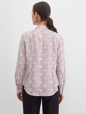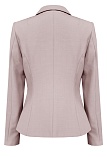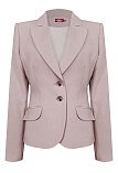 Слегка укороченный  жакет из поливискозной ткани в мягком, приглушенном оттенке коричневого цвета, приталенный, однобортный, английский воротник с широким лацканом, прорезные карманы с клапаном, круглый борт,  застежка на пуговицы, длинный втачной рукав, тонкие подплечники, модель на подкладке. Поливискозная ткань - смесовая ткань, в состав которой входят волокна вискозы и полиэстера. Гармоничное распределение прибавок на свободу облегания обеспечивают больше комфорта и удобства в носке.