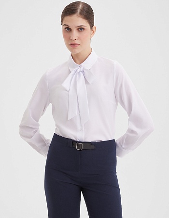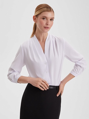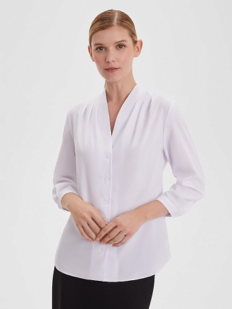 Базовый топ из легкой поливискозной ткани  белого цвета под пиджак или как самостоятельное изделие, приталенный,  средняя длина, круглый неглубокий вырез горловины, по бокам небольшие разрезы, что позволяет носить топ навыпуск.