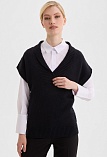 Шерстяной темно-синий жилет с отложным воротником, классической длины