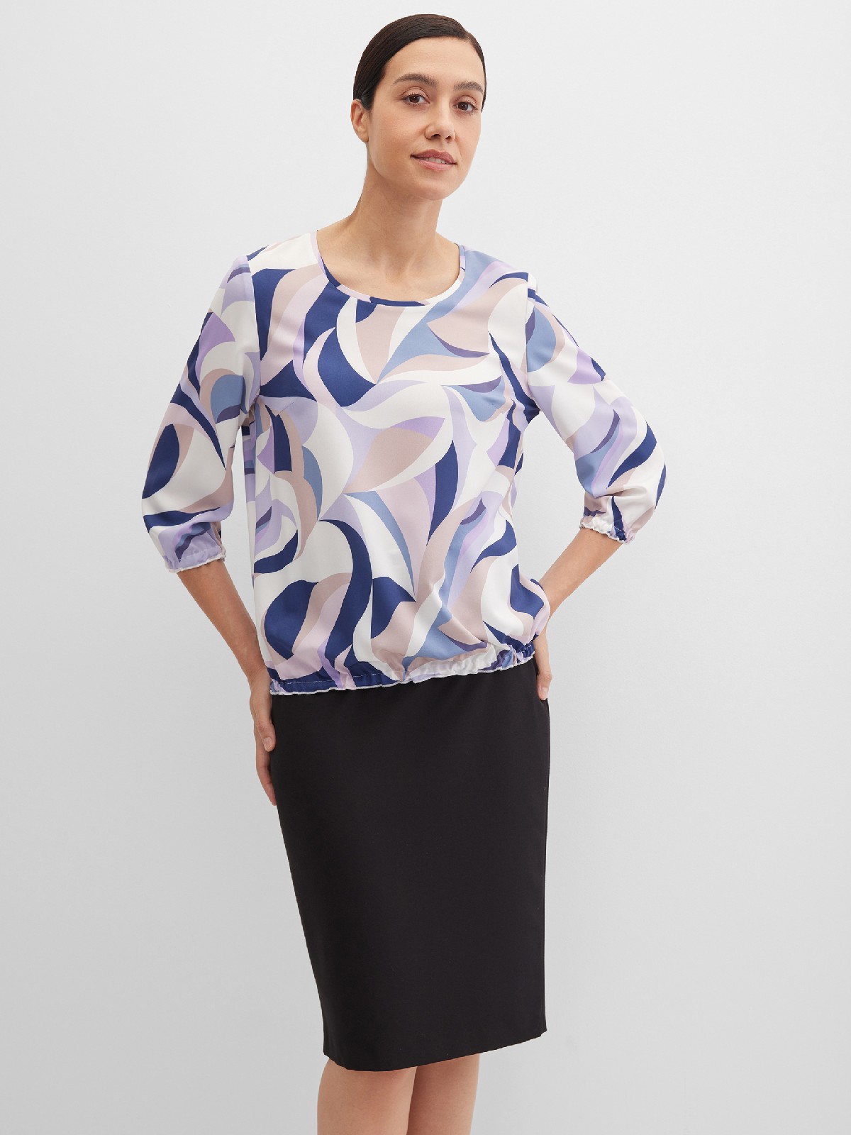 Блузка свободная с резинкой по низу и принтом