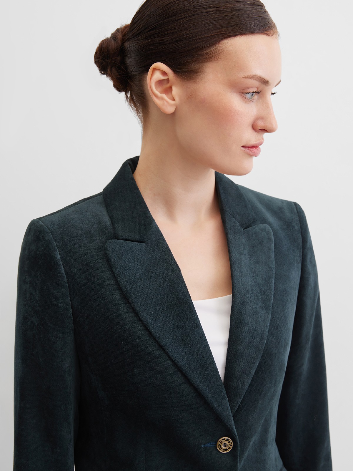 Пиджак с бархатистой структурой и шалевым воротником