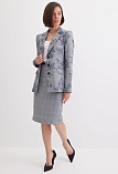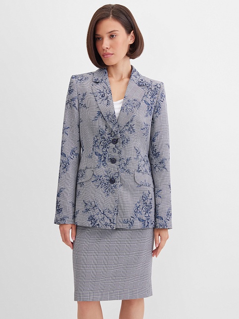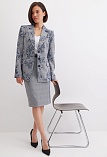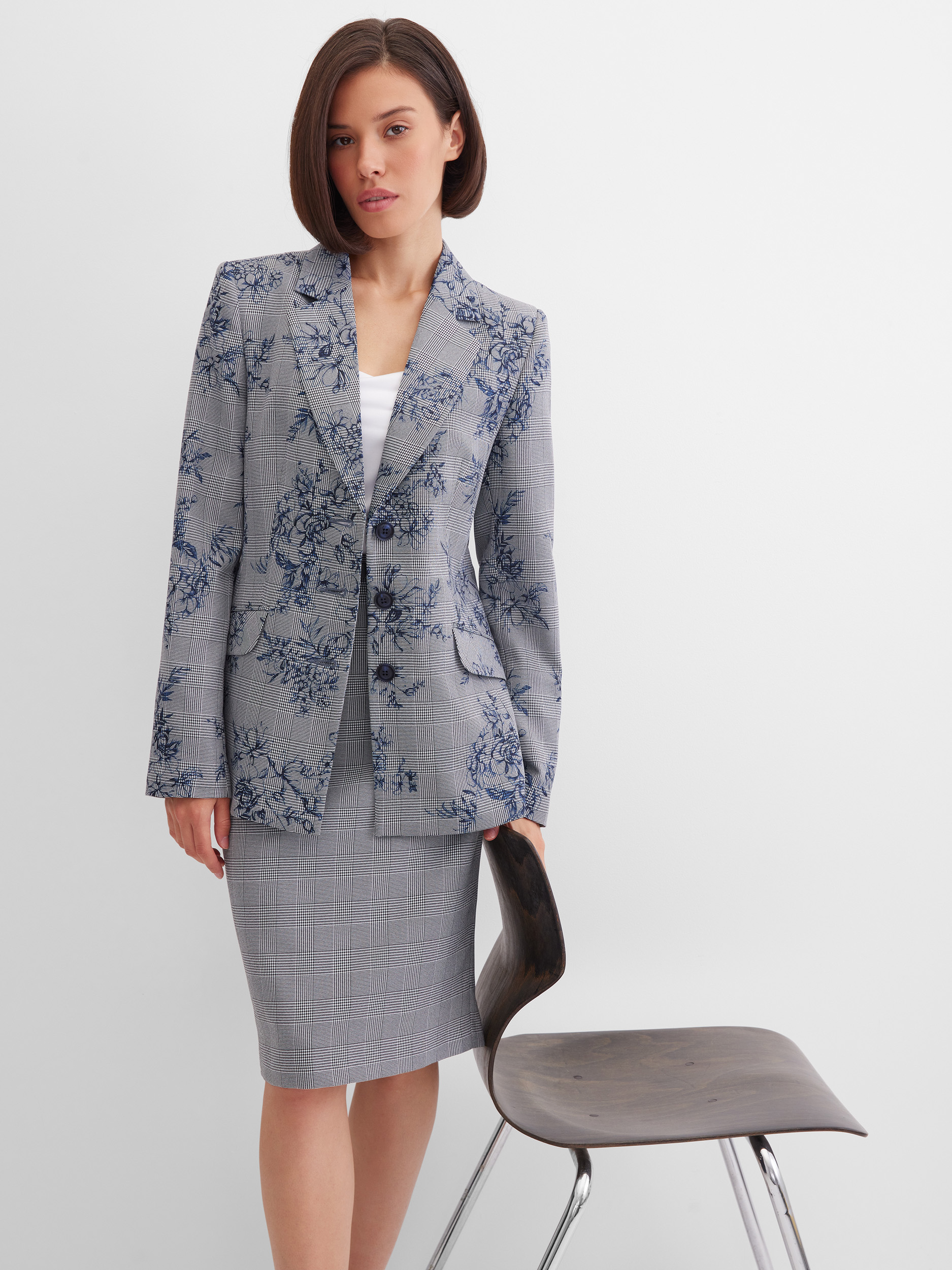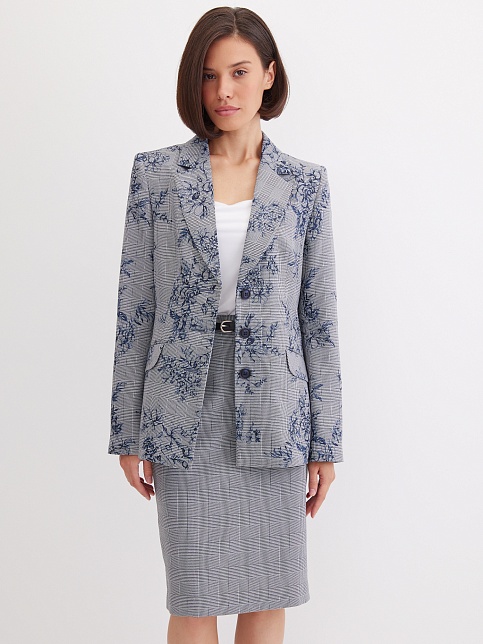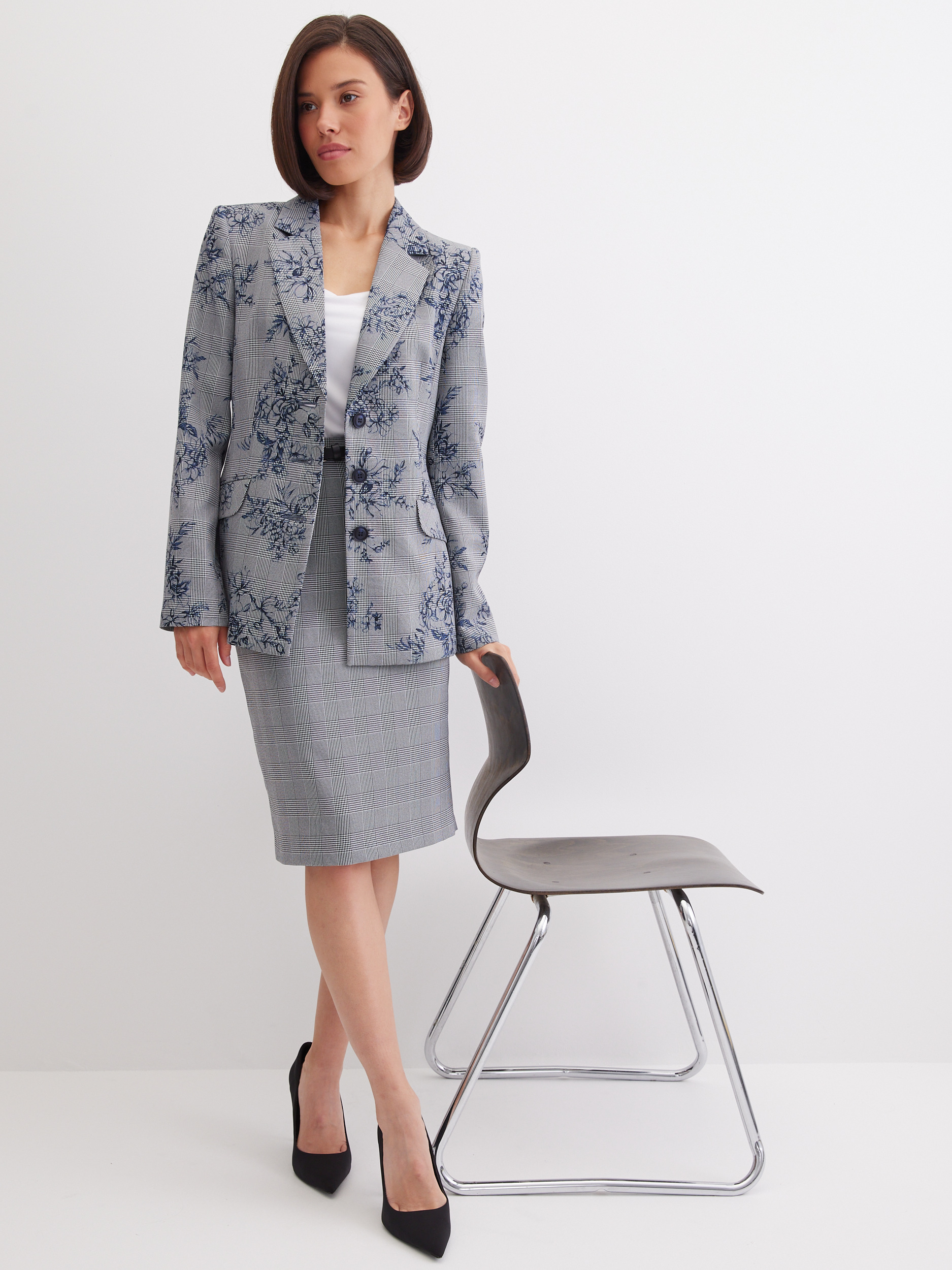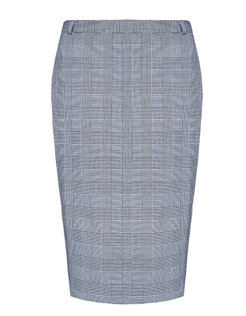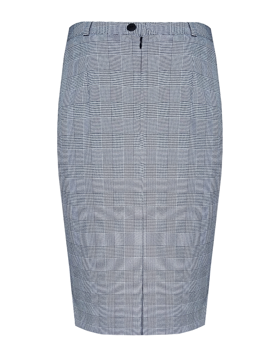 Классическая юбка в традиционную и в то же время актуальную клетку гленчек, где на сером фоне элегантно переплетаются светлые полосы с темными, слегка зауженная книзу, на поясе со шлевками под ремень, посадка средняя, застежка на  молнию и пуговицу в среднем шве спинки, сзади шлица, длина юбки миди - до середины колена, модель на подкладке. Модель выполнена из премиальной костюмной ткани с эстетическим внешним видом и уникальными свойствами, обеспечивающими комфорт и долговечность.