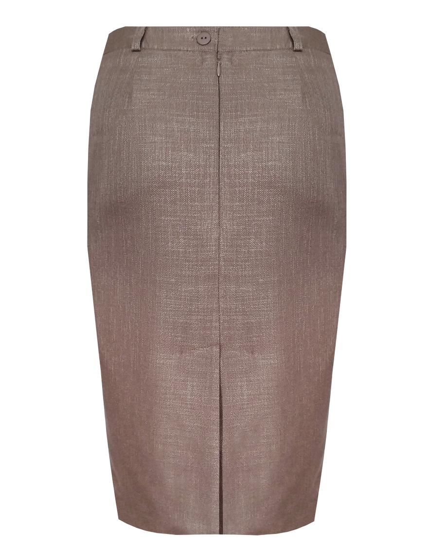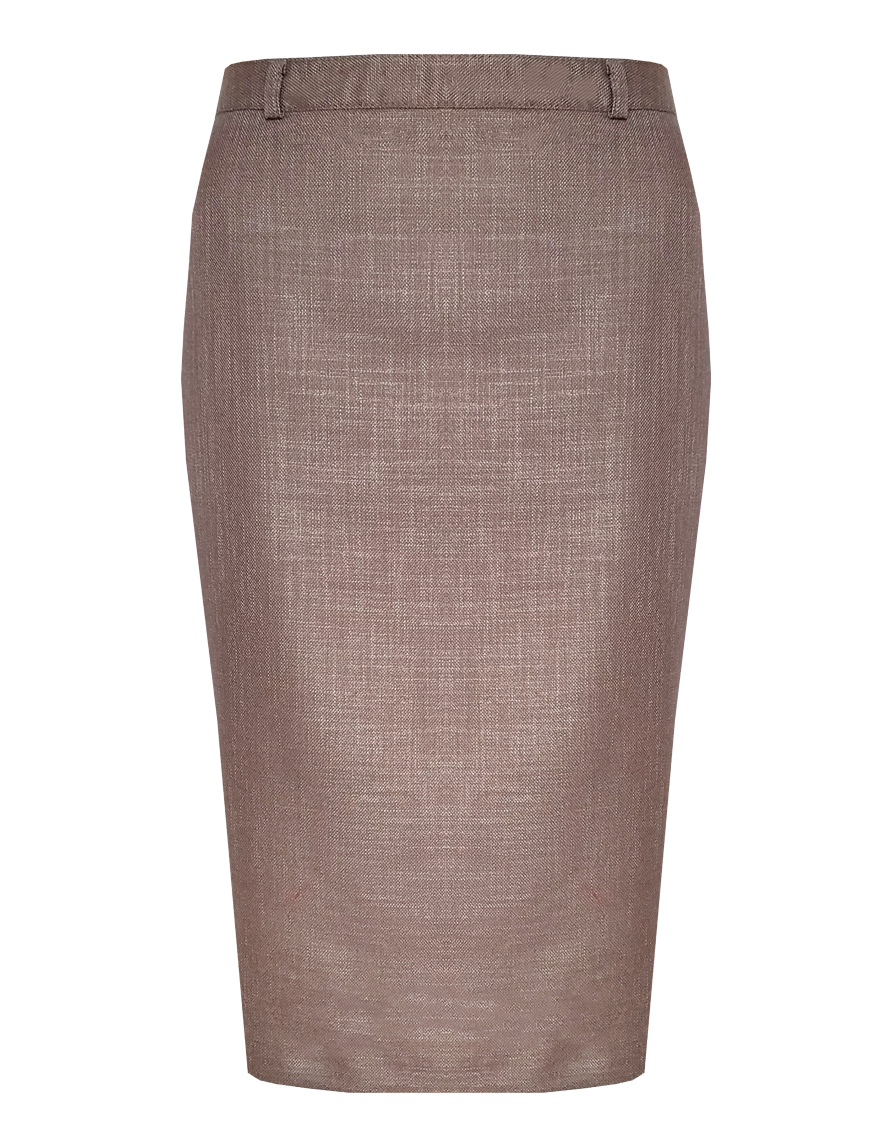 Классическая юбка из меланжевой ткани с характерным пятнистым или "мраморным" эффектом придает изделию особую объемность, благородную фактуру и глубину, делая юбку более выразительной по сравнению с однотонными моделями, слегка зауженная книзу, на поясе со шлевками под ремень, посадка средняя, застежка на молнию и пуговицу в среднем шве спинки, сзади шлица, длина юбки миди - до середины колена, модель на подкладке.