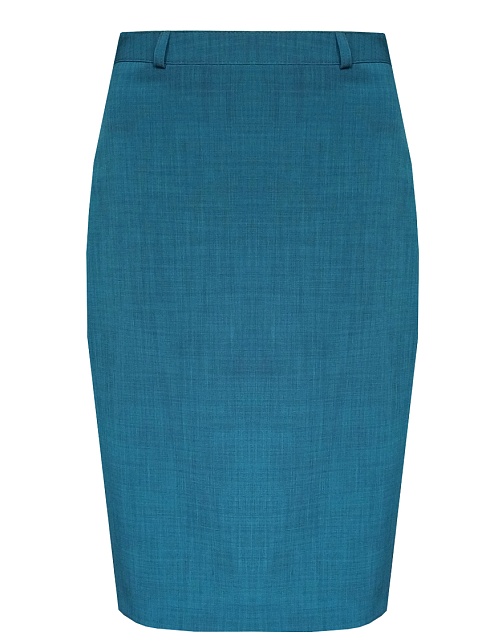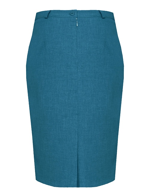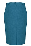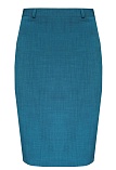 Классическая юбка из поливискозной ткани в насыщенном изумрудном цвете с легким меланжевым эффектом, слегка зауженная книзу, на поясе со шлевками под ремень,  посадка средняя, застежка на  молнию и пуговицу в среднем шве спинки, сзади шлица, длина юбки миди - до середины колена, модель на подкладке. Поливискозная ткань - смесовая ткань, в состав которой входят волокна вискозы и полиэстера. Именно полиэстер придает ткани прочность, долговечность и опрятный внешний вид.