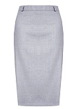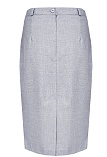 Классическая юбка прямого кроя из поливискозной ткани серого цвета, слегка зауженная книзу, на поясе со шлевками под ремень, посадка средняя, застежка на молнию и пуговицу в среднем шве спинки, сзади шлица, длина юбки миди - до середины колена, модель на подкладке. Поливискозная ткань - это смесовая ткань, в состав которой входят волокна вискозы и полиэстера, именно полиэстер придает ткани прочность, долговечность и опрятный внешний вид. Ткань практически не подвержена истиранию.