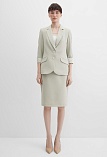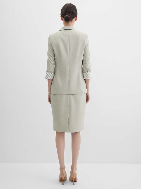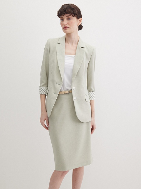 Легкая классическая юбка прямого кроя слегка зауженная книзу из смесовой ткани льняной структуры в нежном и приглушенном оттенке зеленого, который ассоциируется с весной и нежностью, на поясе со шлевками под ремень, посадка средняя, застежка на потайную молнию и пуговицу в среднем шве спинки, сзади шлица для удобства при ходьбе, длина юбки миди - до середины колена, модель на подкладке. Такая ткань отлично пропускает воздух, позволяя коже дышать.