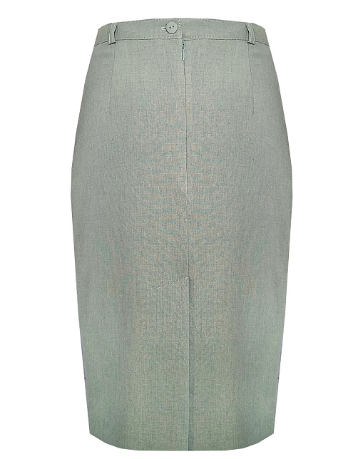 Легкая классическая юбка прямого кроя слегка зауженная книзу из смесовой ткани льняной структуры в насыщенном оттенке зеленого, на поясе со шлевками под ремень, посадка средняя, застежка на потайную молнию и пуговицу в среднем шве спинки, сзади шлица для удобства при ходьбе, длина юбки миди - до середины колена, модель на подкладке. Такая ткань отлично пропускает воздух, позволяя коже дышать.