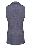 Изысканный жилет из антрацитового меланжа: основной оттенок серо-черный или "мокрый асфальт", в который вплетается более светлая нить, придавая ткани двухцветный цветовой эффект, а вплетение третьего цвета образует "легкий намек на клетку". Подобное переплетение придает жилету особый шик и дорогой внешний вид. Модель с комфортной длиной прикрывающая бедра, приталенный, однобортный, английский воротник, внутренние карманы в рельефе почти незаметны, застежка на одну пуговицу, модель на подкладке.